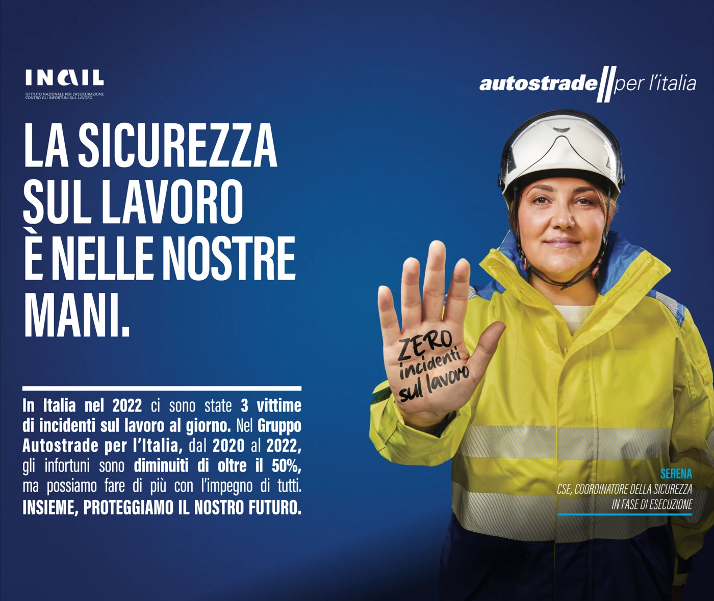 Il Gruppo Autostrade per l’Italia crede fortemente nel valore della collaborazione e del confronto e per questo motivo ha attivato importanti partnership con INAIL e Organizzazioni Sindacali al fine di condividere azioni e strategie per raggiungere l’obiettivo «zero incidenti». La collaborazione è finalizzata alla promozione della salute e sicurezza dei lavoratori e alla diffusione della cultura della sicurezza attraverso la realizzazione di progetti incentrati sugli aspetti della comunicazione, formazione, organizzazione, innovazione e sperimentazione di nuove tecnologie in ambito salute e sicurezza sul lavoro.