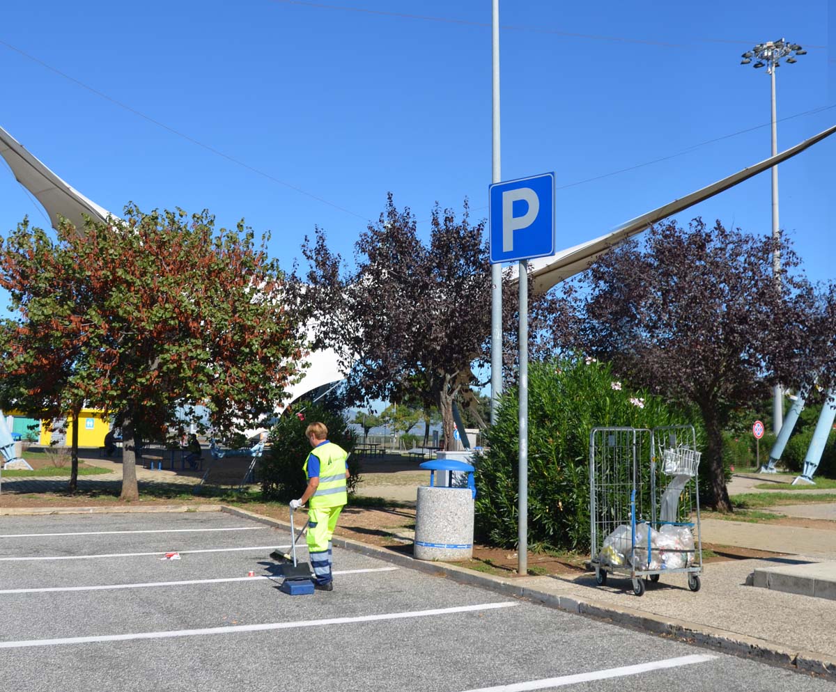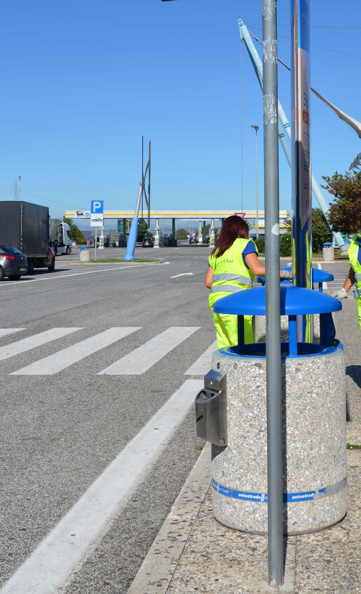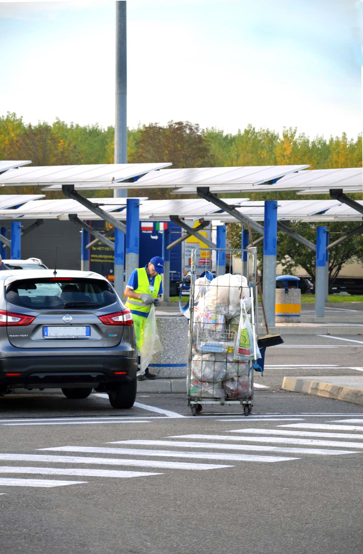 pulizia dei piazzali esterni delle Aree di Servizio sia sulla parte pavimentata che a verde;