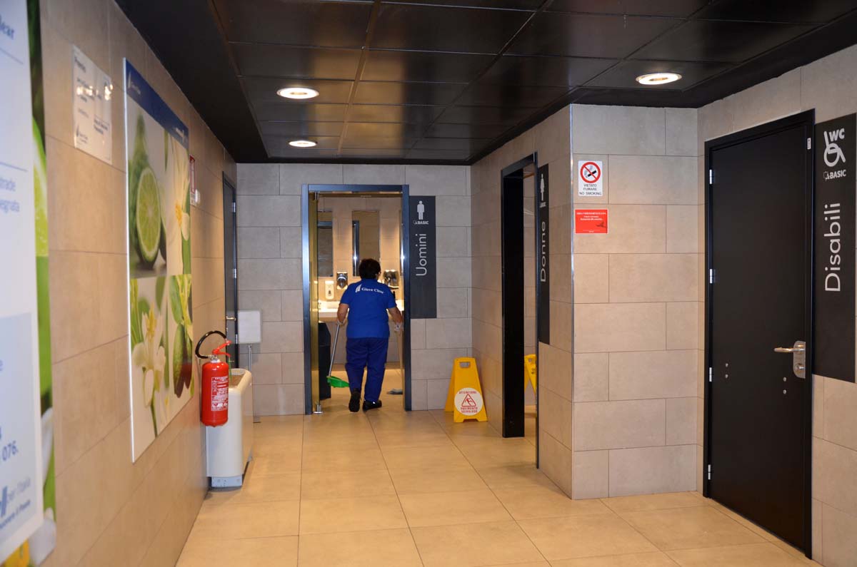 pulizia e disinfezione dei locali adibiti a servizi igienici presenti nei fabbricati gestiti dagli operatori commerciali (Food&Beverage);