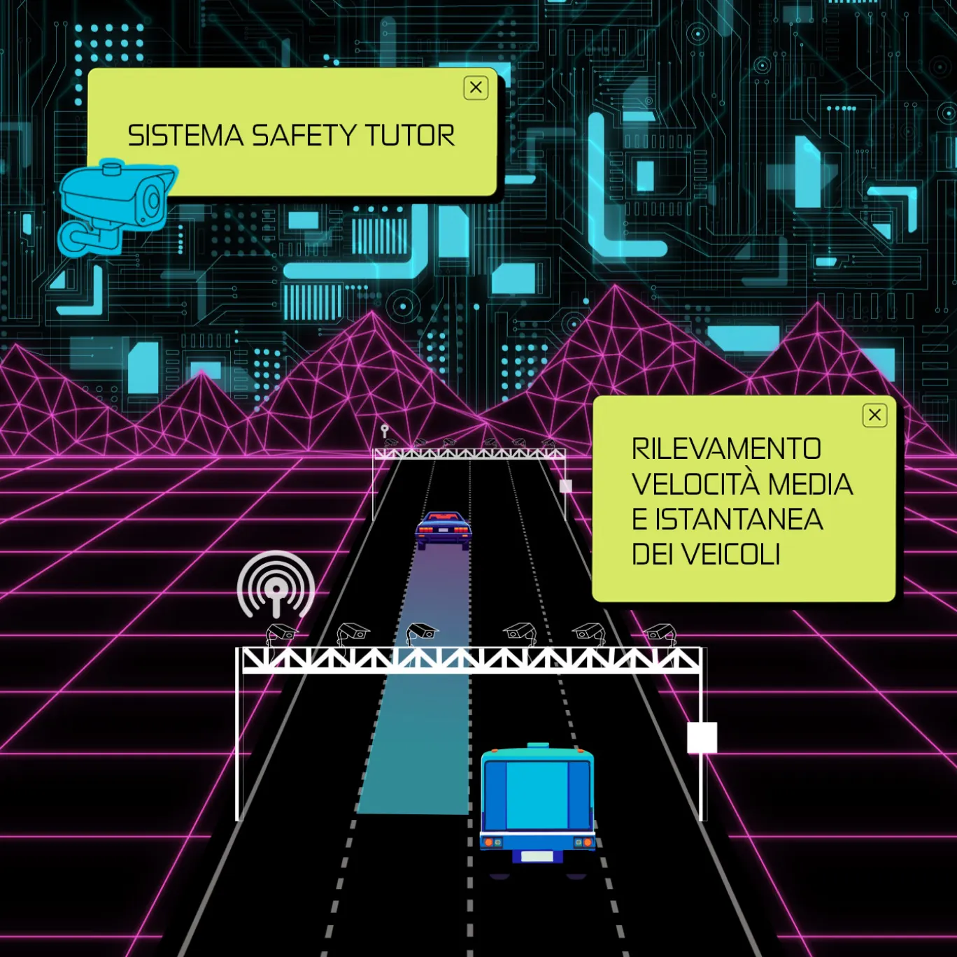 Il sistema in grado di rilevare la velocità media e istantanea dei veicoli che transitano lungo un determinato tratto autostradale, grazie all’utilizzo di radar e telecamere evolute ad alta definizione.